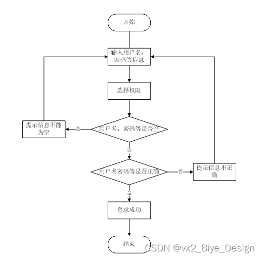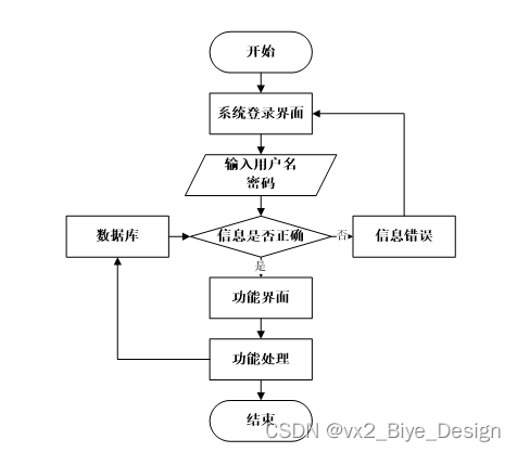 用户打开并进入系统后,会先显示登录界面,输入正确的用户名和密码,系统自动检测信息,若信息无误,则用户会进入系统功能界面,进行操作,否则会提示错误无法登录,操作流程如图3-3所示。