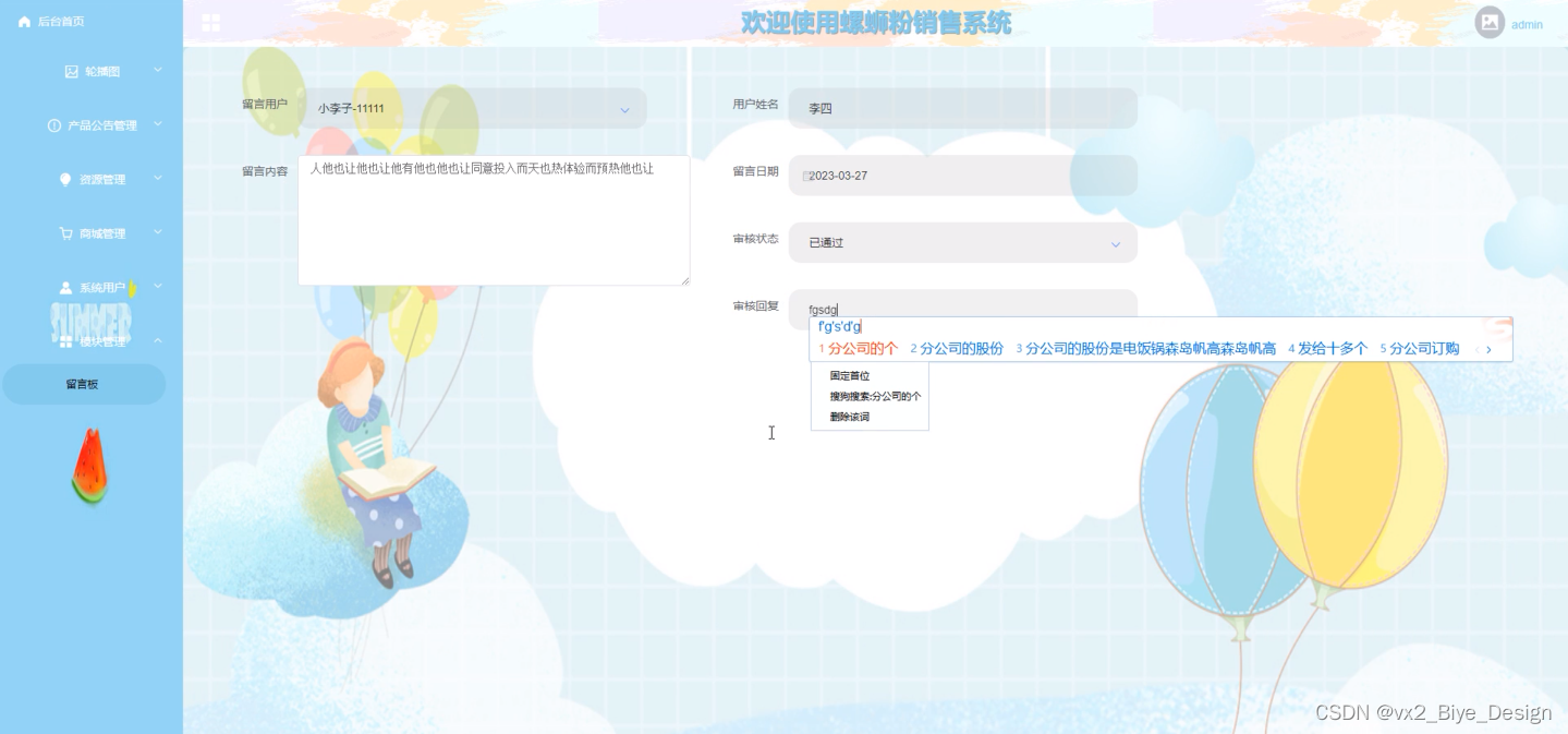 本螺丝粉销售系统设计基本达到我理想的开发状态,在各个功能的运行方面,表现较为良好,基本满足用户的使用需求,及时矫正了较多的错误信息。总体说来,软件通过了相应的测试。