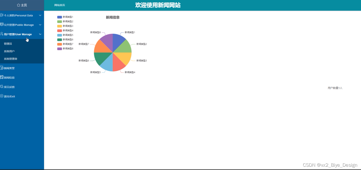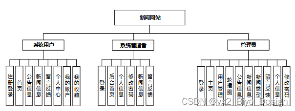 (1)功能要求:可以管理主页,个人资料,公共管理(轮播图,公告信息),用户管理(管理员,系统用户,系统管理者),新闻信息,新闻类型,留言反馈等功能模块。