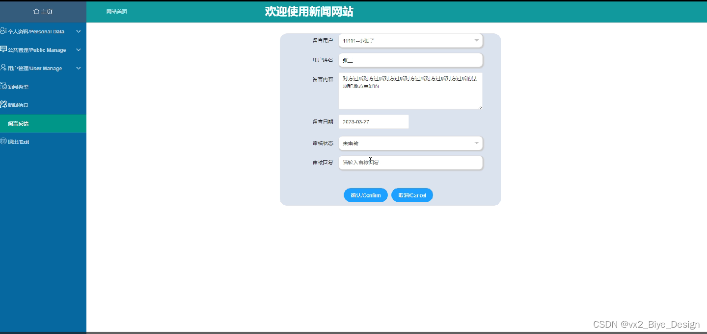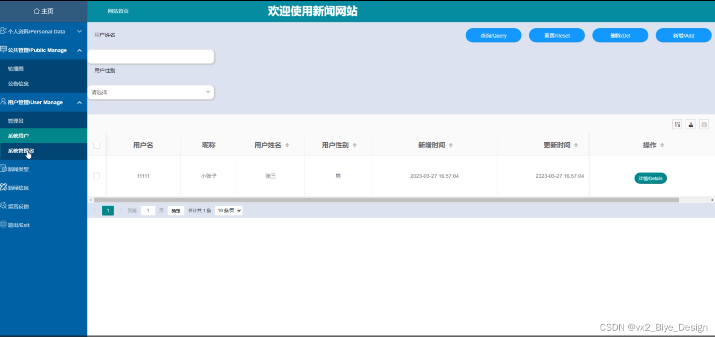 3、功能的完善性:可以管理主页,个人资料,公共管理(轮播图,公告信息),用户管理(管理员,系统用户,系统管理者),新闻信息,新闻类型,留言反馈等模块的修改维护操作。
