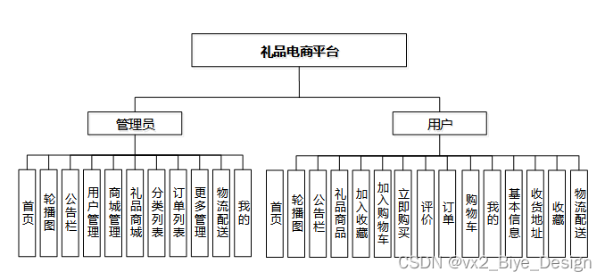 根据条件需要,系统结构主要由二大用户组成。一是买家组成的注册用户,二是管理员用户。