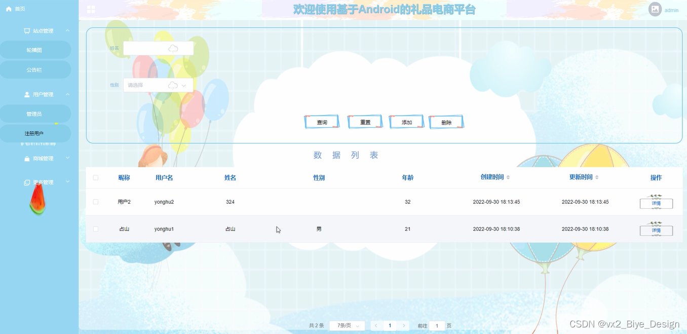 对注册用户注册信息的管理(添加,删除,修改,查询)。