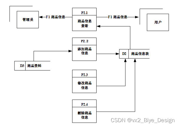 将商品信息维护进行细化得到商品信息管理二层数据流程图,如下图所示。