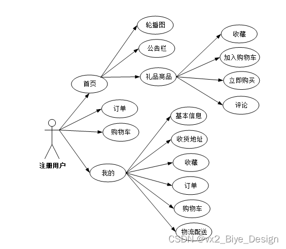 2.注册用户主要使用系统的在线购买业务,下图所示为注册用户用例图。