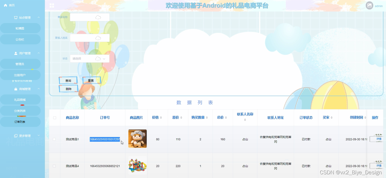 管理人员可以对订单进行增删查改的操作,这些操作将在订单管理界面进行。