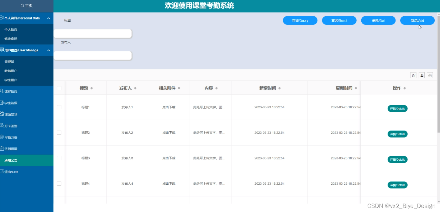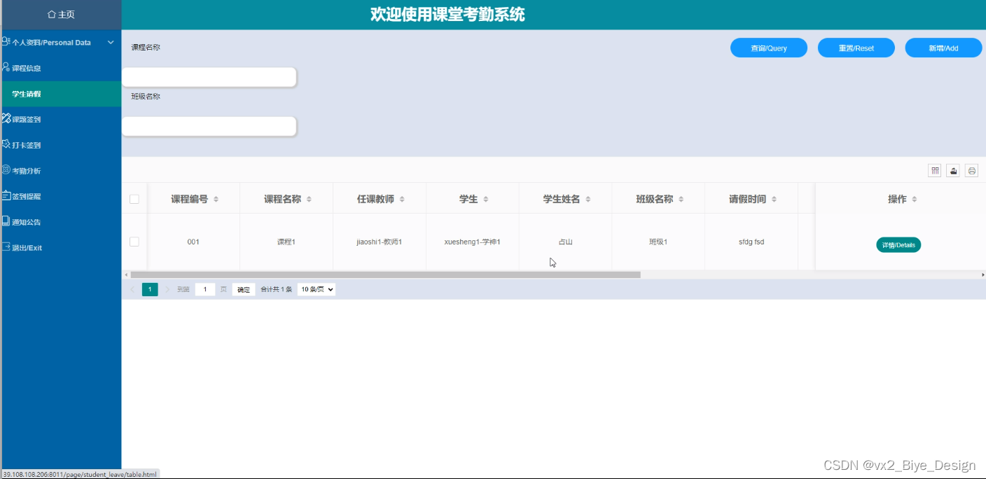 In terms of system design, the B/S structure is adopted, and Java technology is also used for design on dynamic pages. MySQL database is used in the background, making it a very excellent classroom attendance system.