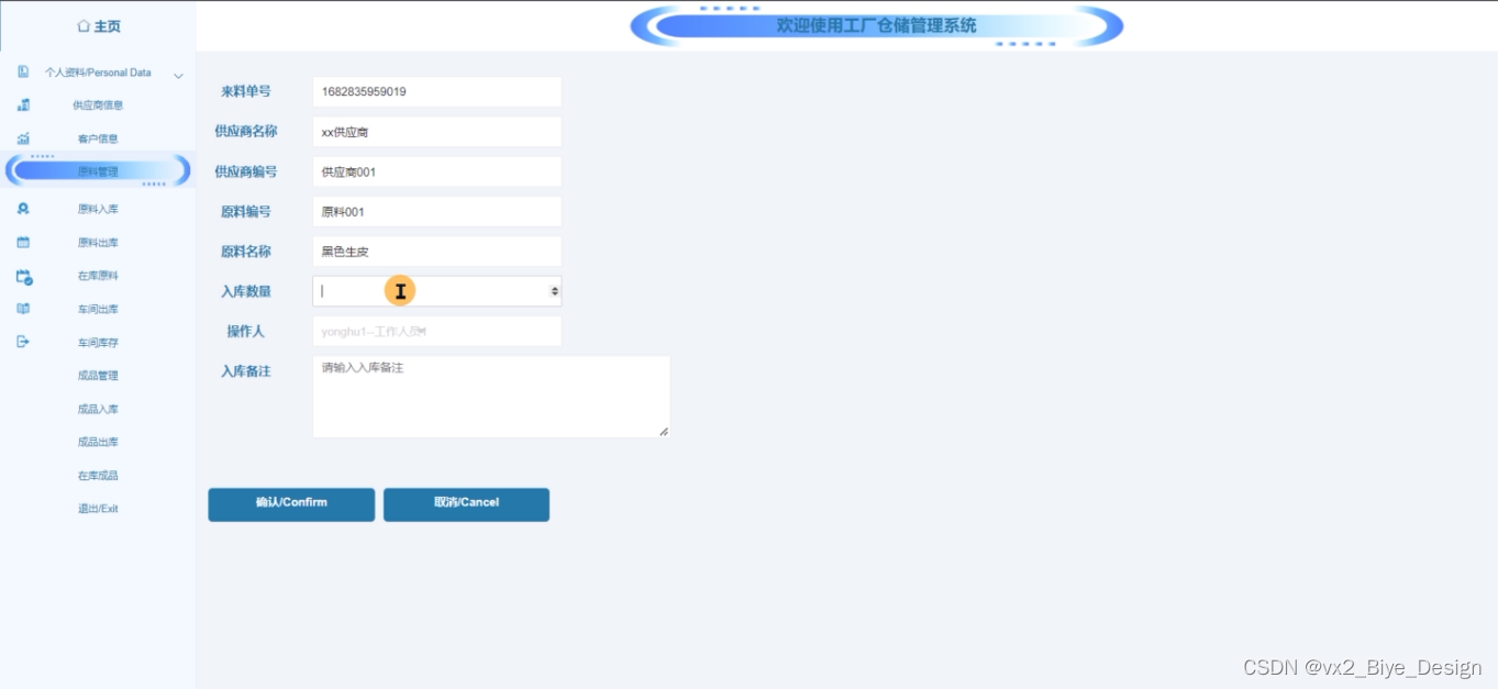 图5-13原料入库界面图