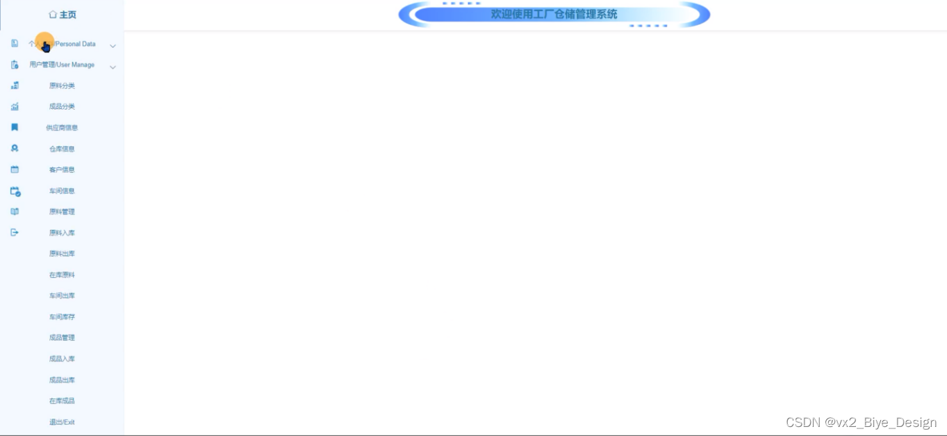 The main users of the Spring Boot factory warehouse management system are administrators and staff. The functions include: homepage, personal information, user management, raw material classification, finished product classification, supplier information, warehouse information, customer information, workshop information, raw material management, raw material outbound, raw material inbound, in stock raw materials, workshop outbound, workshop inventory, finished product management, finished product outbound, finished product inbound, and in stock finished products; Staff: Home page, personal information, supplier information, customer information, raw material management, raw material outbound, raw material inbound, in stock raw materials, workshop outbound, workshop inventory, finished product management, finished product outbound, finished product inbound, in stock finished products, and other functions. Due to the comprehensive design of the functional modules on this website, the entire process of the factory warehouse management system can be implemented.