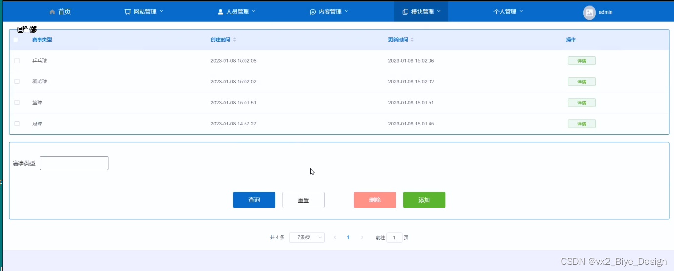 | 用例描述 | 管理员正确登录后台管理的条件下,对赛事信息模块进行管理 |