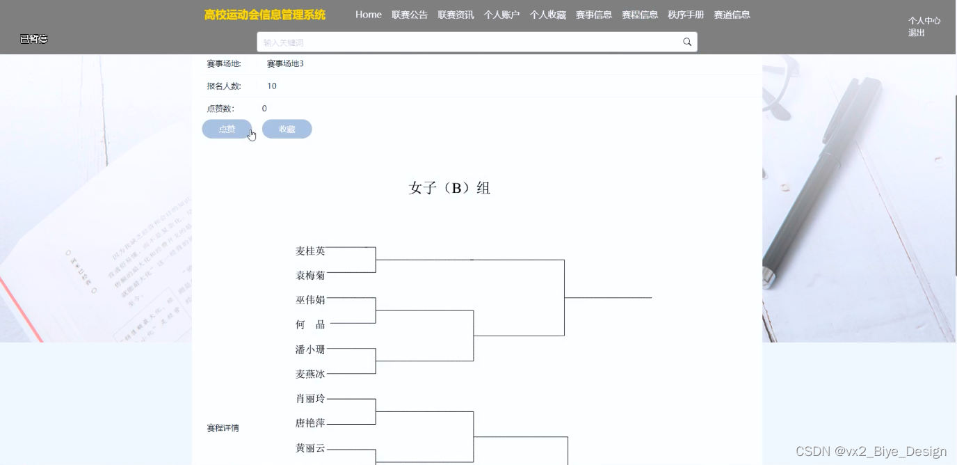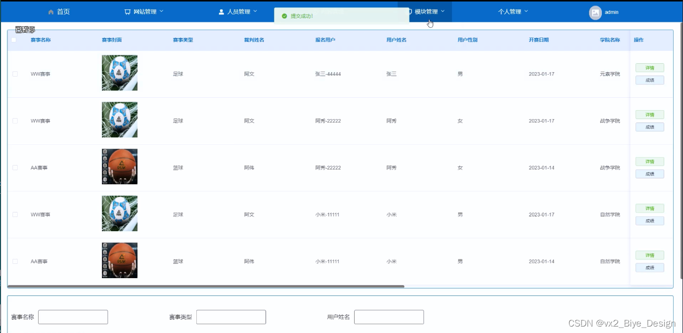 (2)高校运动会信息管理系统中的web后台管理中的前端使用的是JavaScript框架,它配合ajax和jquery可以美化页面设计。