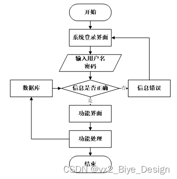 用户打开客户端并进入系统后,会先显示登录界面,输入正确的用户名和密码,系统自动检测信息,若信息无误,则用户会进入系统功能界面,进行操作,否则会提示错误无法登录,操作流程如图3-3所示。