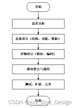 停车微信小程序开发时,首先进行需求分析,进而对系统进行总体的设计规划,设计系统功能模块,数据库的选择等,本系统的开发流程如图3-1所示