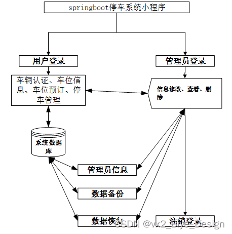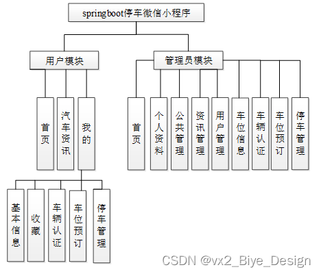 系统架构图属于系统设计阶段,系统架构图只是这个阶段一个产物,系统的总体架构决定了整个系统的模式,是系统的基础。基于停车微信小程序的整体结构设计如图4-2所示。