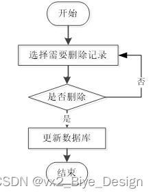 用户选择要删除的信息并单击Delete按钮。系统提示是否删除信息。如果用户想要删除信息,系统将删除信息。系统数据库删除信息。删除信息流程图如图3-5所示。