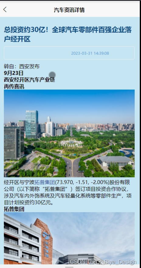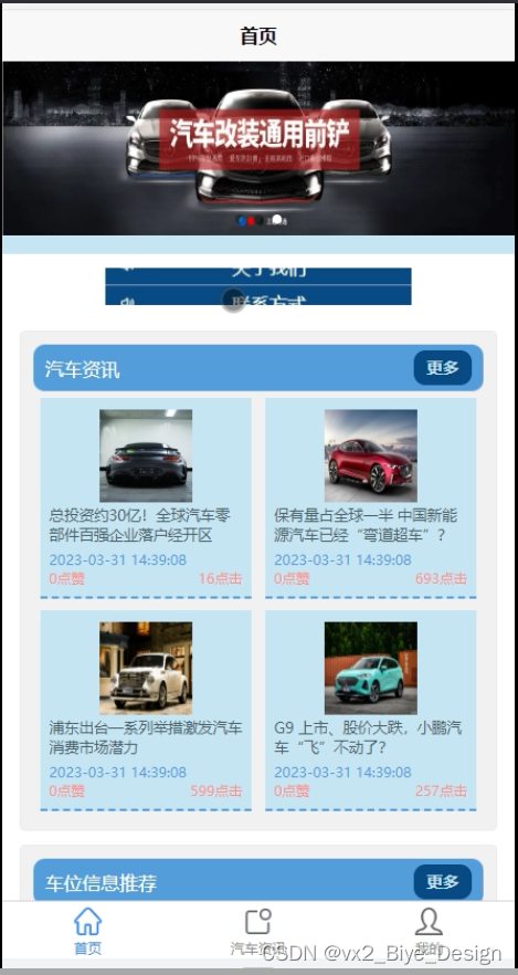 汽车资讯详情页面可查看标题、内容、发布日期、点赞数、浏览数等操作,如图5.10所示。