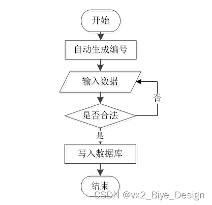 对于校园志愿者管理系统,需要随时添加所需要的数据信息,对于用户添加信息,需要根据添加界面,根据选框的内容进行填写所要添加的数据信息,信息输入完成后判断数据信息是否符合要求,符合要求则添加完成,用户所添加的信息不符合要求,则需要返回到第一步,重新输入数据信息,再进行判断操作,如图3-2所示。