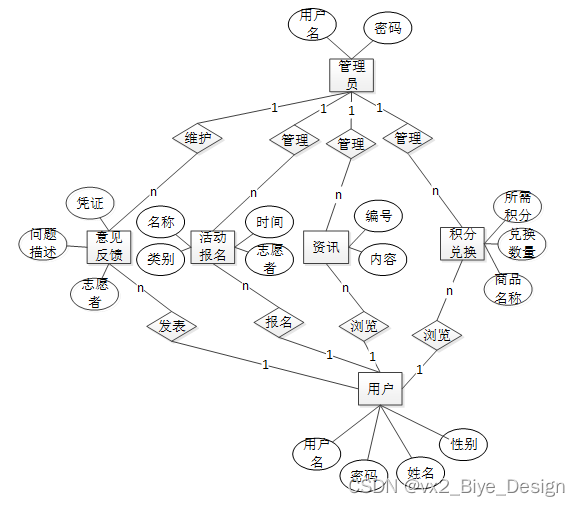 基于系统使用的数据库管理系统的特点,对数据库的概念模型进行了转换和构建。但是,这个系统只需要充分考虑校园志愿者管理系统的功能,而且组织比较清晰。