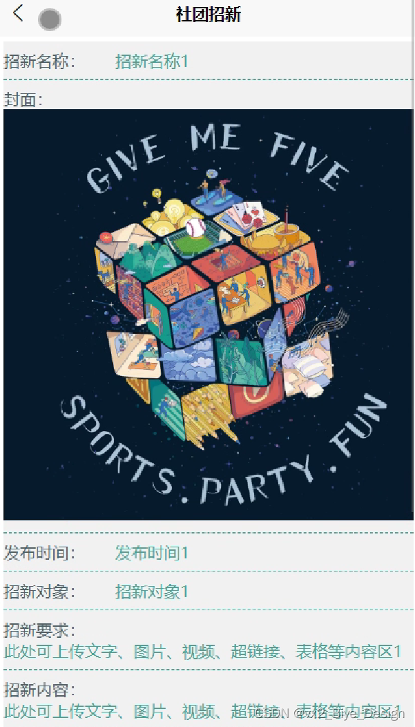 - 操作简单方便、系统界面安全良、简单明了的页面布局、方便查询社团资讯、活动资讯、社团招新等相关信息。