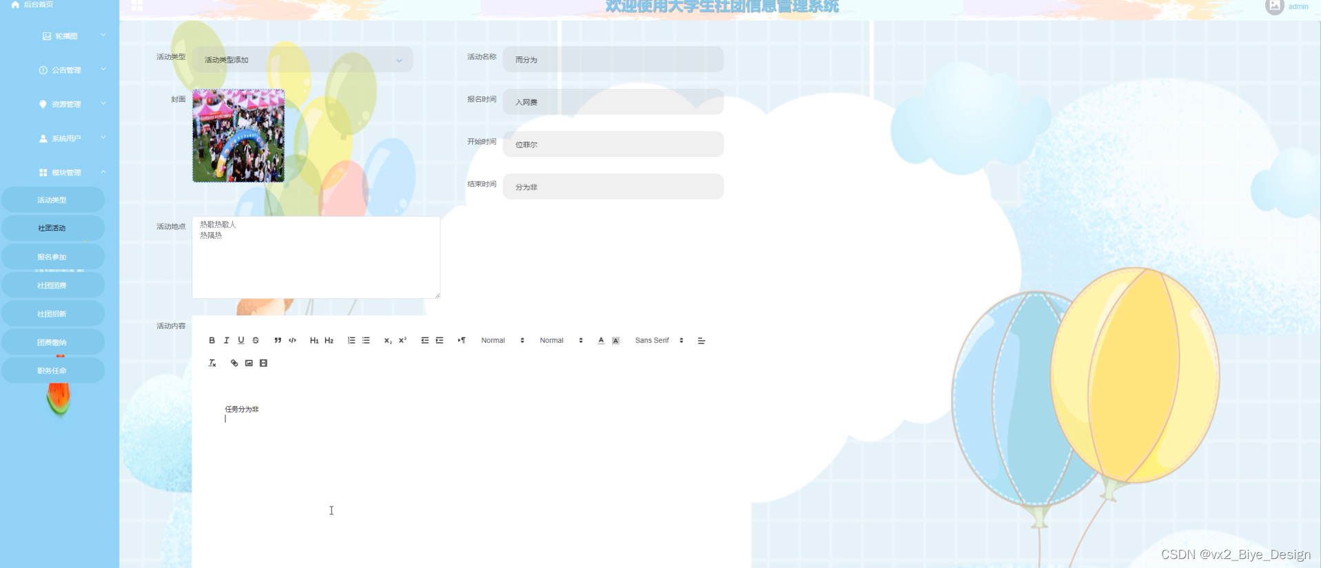图5-4社团活动管理界面图