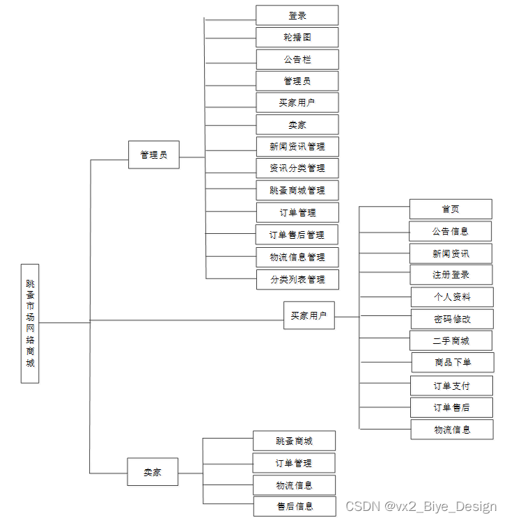 按照跳蚤市场网络商城的角色,我划分为了买家用户管理模块、卖家管理模块和管理员管理模块这三大部分。