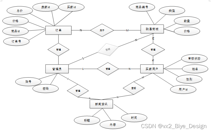 下面是整个跳蚤市场网络商城中主要的数据库表总E-R实体关系图。