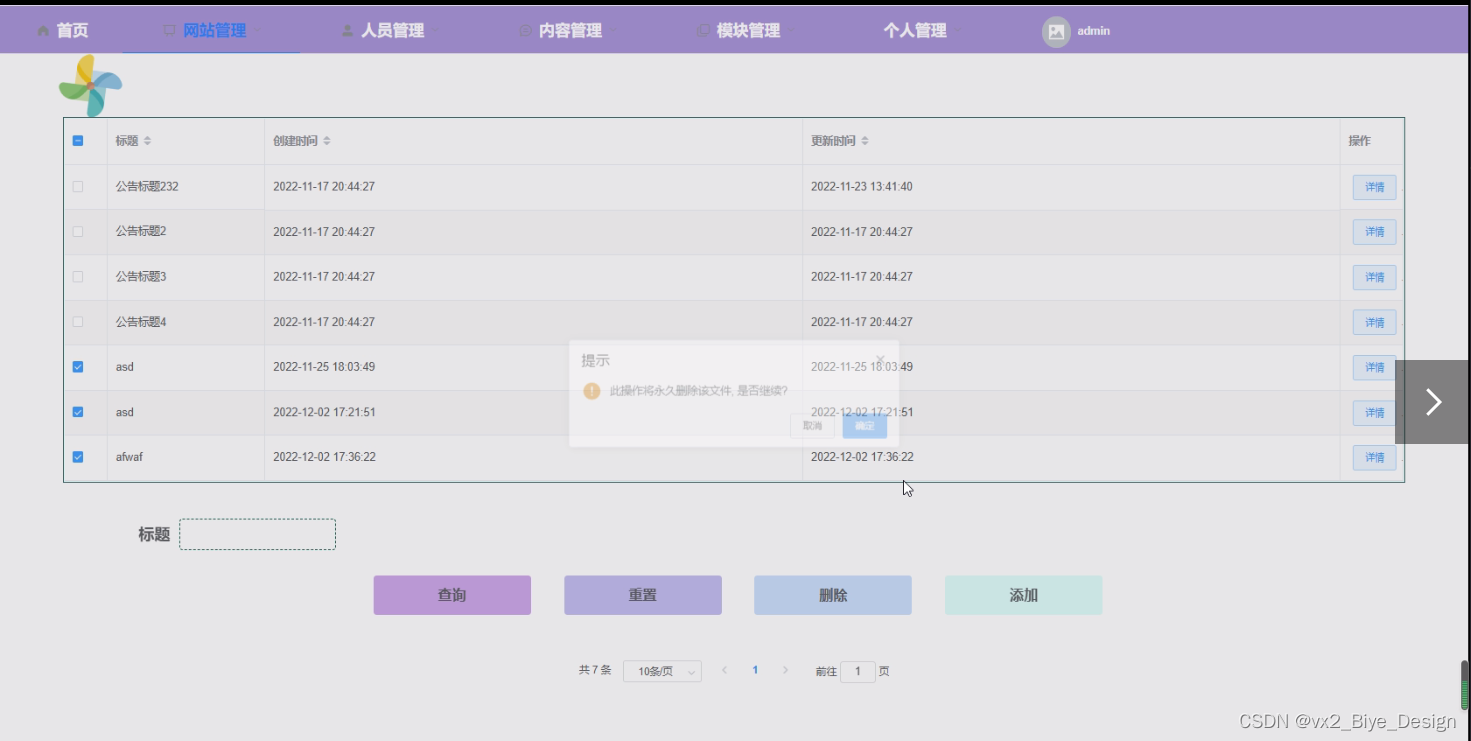 公告数据信息管理:发布、删除相关的公告栏数据信息。
