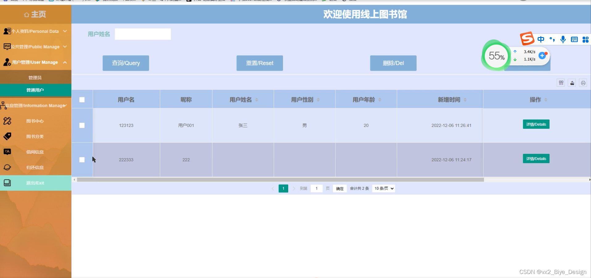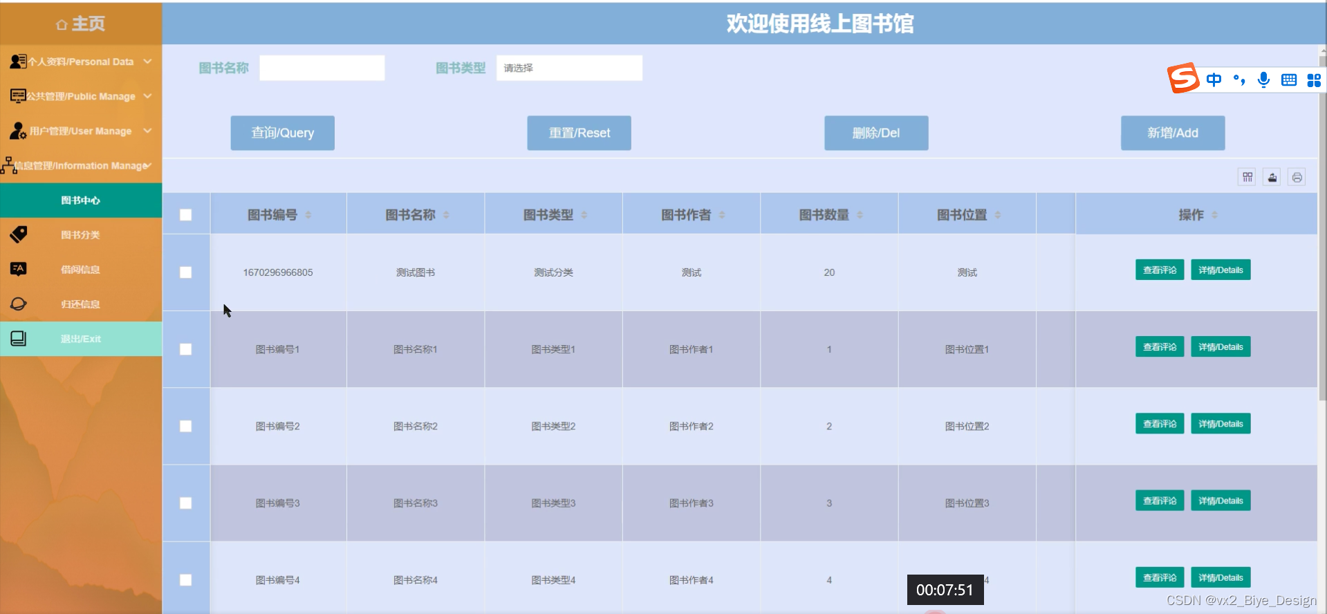 The front-end interface of the system mainly involves technologies such as Java, HTML, JQUERY, etc. Through these technologies, the beauty and dynamic effect of the front-end page can be achieved to make it conform to the aesthetic view of the masses. The main technologies used in the background are Java programming language, MySQL database, JSP and AJAX asynchronous interaction. The online library system based on AJAX asynchronous mode has solved the human resource The waste of material resources and time and the limitation of the depth of communication make the process of communication faster, more accurate and convenient, and complete the basic functions of the online library system: home page, personal data, public management (broadcast map, bulletin board) user management (administrator, general user) information management (book information, book information list) book center, book classification, borrowing information, and return information.