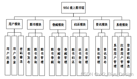 根据用户对系统的需求,要求系统简单操作,能够准确,完整的对信息进行管理。线上图书馆系统在对需求做解析后,整个系统主要分为两个部分:管理员和普通用户,每个模块下的分支功能不一样。对功能做出如下说明: