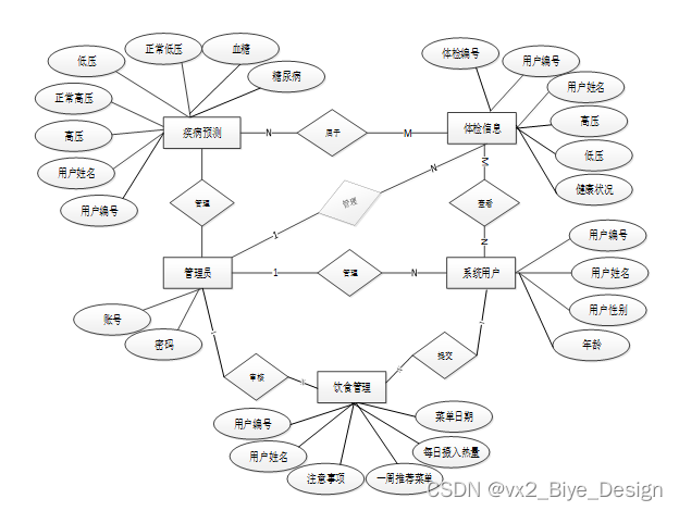 下面是整个疗养院健康管理系统中主要的数据库表总E-R实体关系图。