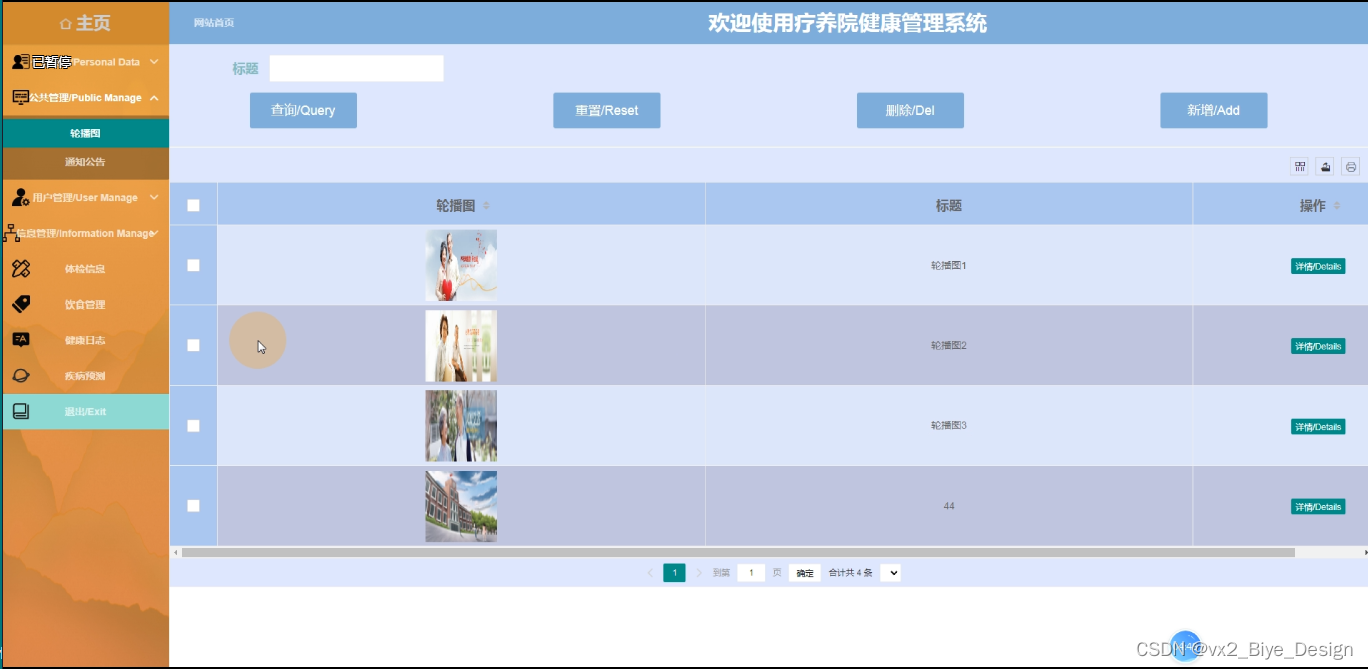 公共管理模块是对通知公告和轮播图的设置,只有管理员权限才能进行更新维护。界面如下图4-14所示。
