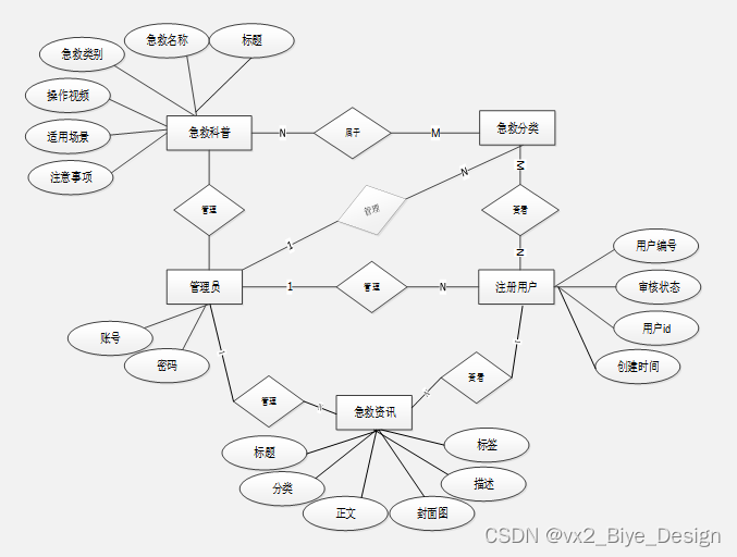 (3)确定好系统使用的技术,进行在线确认系统所划分的用户角色,并且根据用户角色划分确定所要设计的功能模块,对于应急救护知识普及系统小程序系统的设计主要划分别为管理员和用户角色,并所使用的功能模块也相应不同,但是系统的数据库实现的内容是交互的,用户可以随时根据自己的需求进行课程信息,对于系统工作人员可以根据自己的分管内容进行在线信息的处理及操作,管理员获取到所有用户的详细数据信息,并根据需求进行第一时间处理解决。