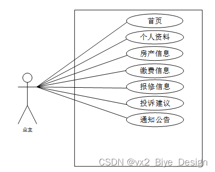 小区物业管理系统中业主角色用例图如图2.1所示: