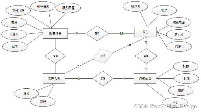 下面是整个小区物业管理系统中主要的数据库表总E-R实体关系图。