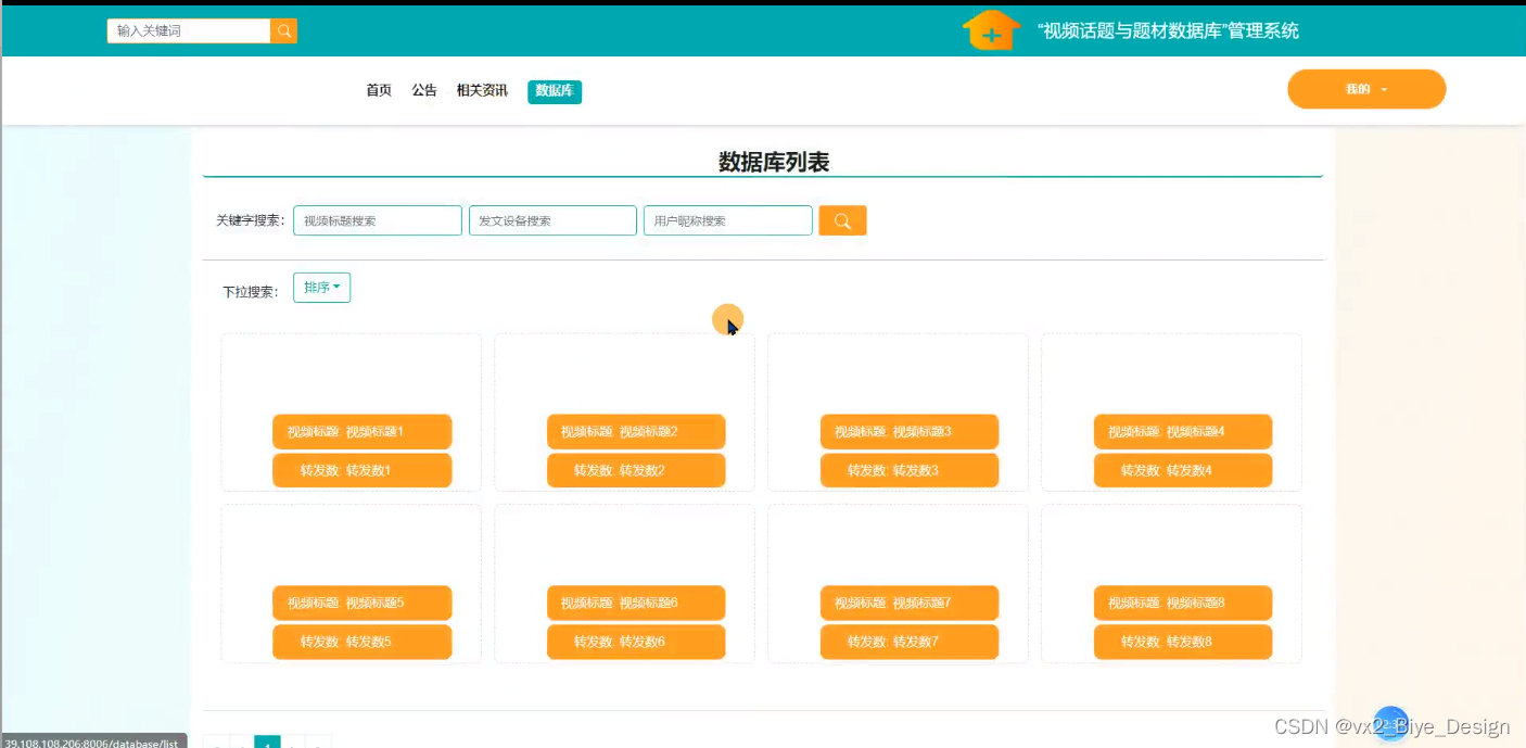 关键字:“视频话题与题材数据库”管理系统 ; python语言;django框架;mysql数据库