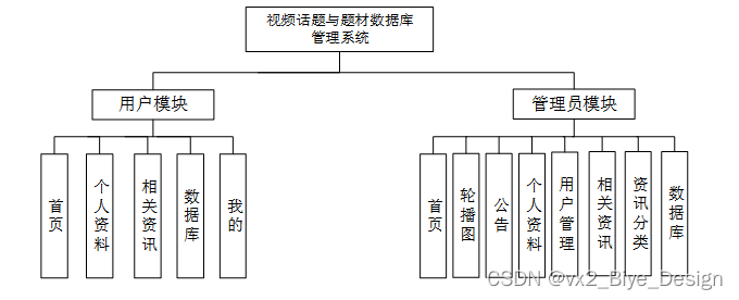 这些功能可以充分满足“视频话题与题材数据库”管理系统的需求。此系统功能较为全面如下图系统功能结构如图4-4所示。