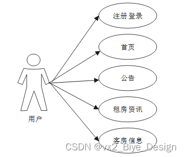 租房管理平台在对需求做解析后,整个系统主要分为两个部分:管理员和用户,每个模块下的分支功能不一样。对功能做出如下说明: