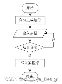 用户成功登入系统后就能够实现增加数据的操作,增加数据的编号是特定的,系统生成,用户不能随意填写,除了编号以外,其他增加信息用户自己填写,填写后的信息经过系统验证,验证合法通过就显示增加数据成功了,相反的话,就没有增加成功,图2-1显示的就是在增加数据时的流程。