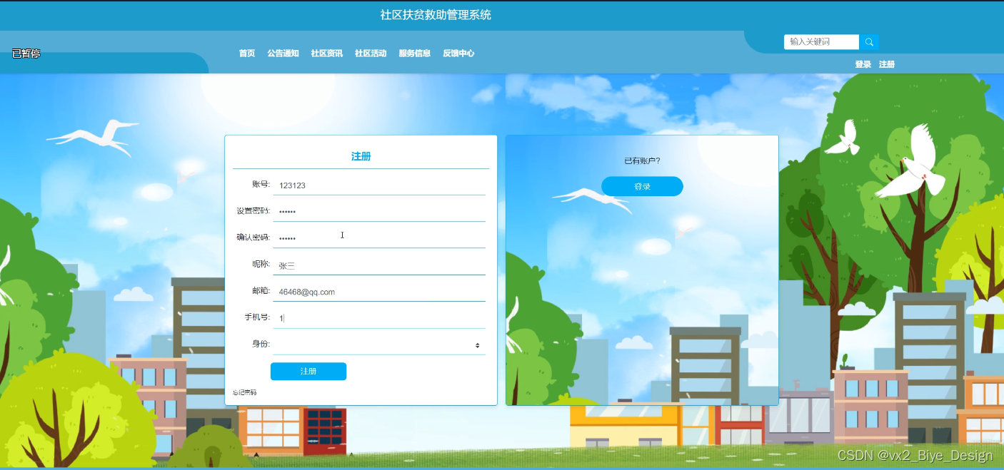 (1)用户注册登录:游客可以随时进入到系统中,对系统中的信息浏览,但是想要实现社区活动以及服务信息等操作,就必须有这个系统的账号,如果没有账号的话,可以注册以后进行相关的操作,同时用户还可以通过“我的账户”这以按钮对个人信息以及操作的信息进行管控。