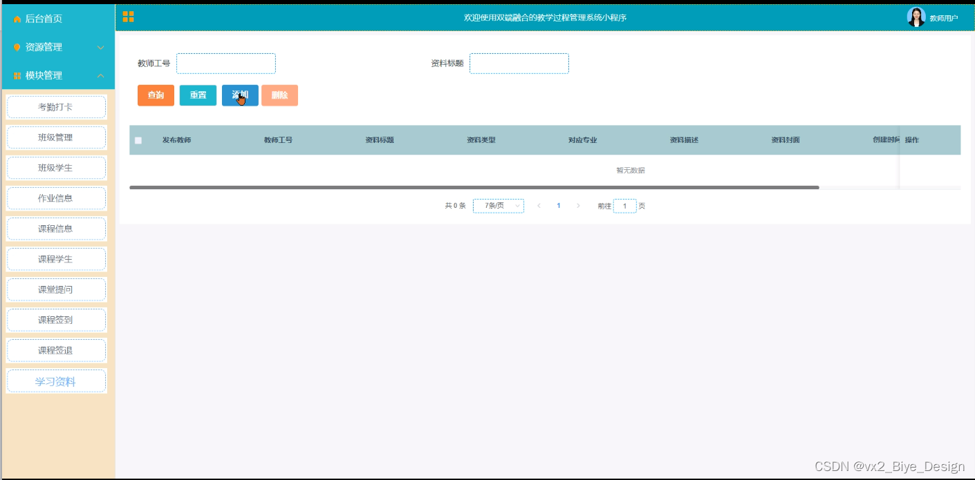 本双端融合的教学过程管理系统小程序满足用户的要求和需求,本双端融合的教学过程管理系统小程序的使用能够有效的提高用户的使用率。
