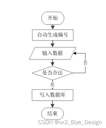 对于双端融合的教学过程管理系统小程序,需要随时添加所需要的数据信息,对于用户添加信息,需要根据添加界面,根据选框的内容进行填写所要添加的数据信息,信息输入完成后判断数据信息是否符合要求,符合要求则添加完成,用户所添加的信息不符合要求,则需要返回到第一步,重新输入数据信息,再进行判断操作,如图3-2所示。