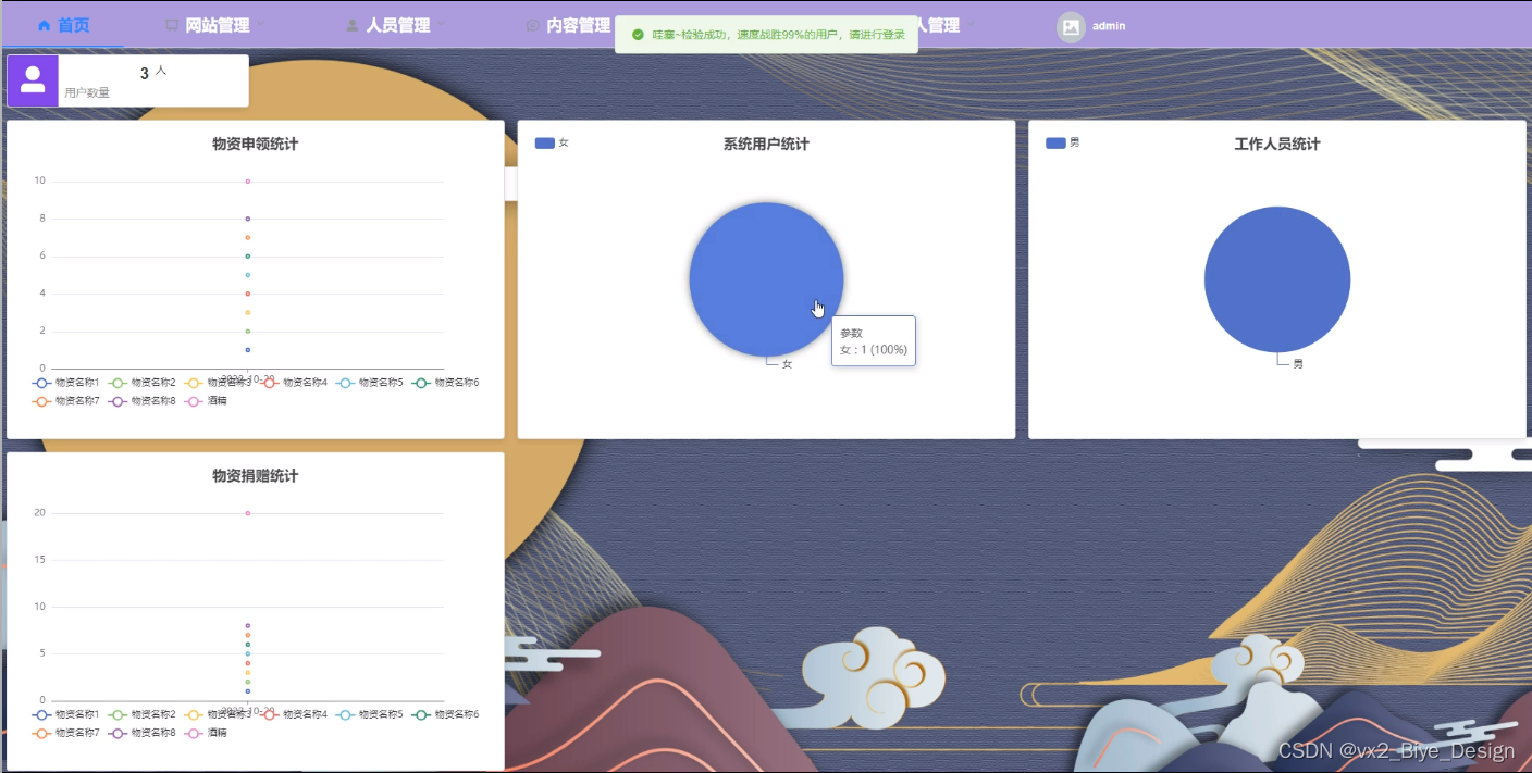 疫情物资管理系统小程序 采用了SPRINGBOOT技术,开发了功能完备、使用简单的前端应用程序,并建立、维护了一个数据完整、安全、稳定性强的后台数据库系统。