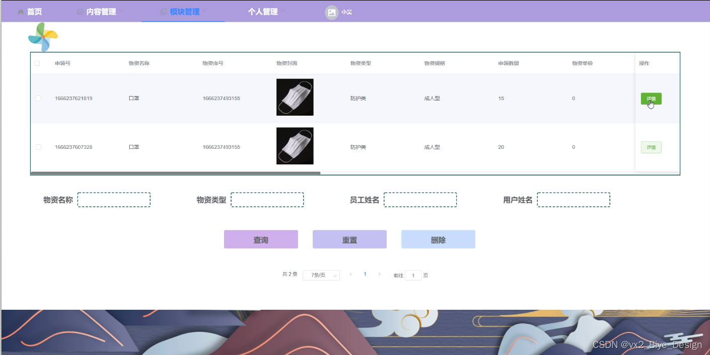 With the rapid development of China's economy, people's demand for mobile phones is growing, and various mobile phone software are also widely used. However, data information management for mobile phones and various mobile phone software are also popular among users. The epidemic materials management system applet is widely used by users, so that users can view the data information management of the epidemic materials management system applet online at any time, The small program of epidemic materials management system has been specially developed.