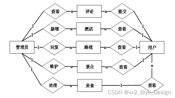 景点:存放给景点的内容,包括景点名称、景点地址、门票价格、周边餐饮、周边住宿、景点视频、景点简介等数据项。