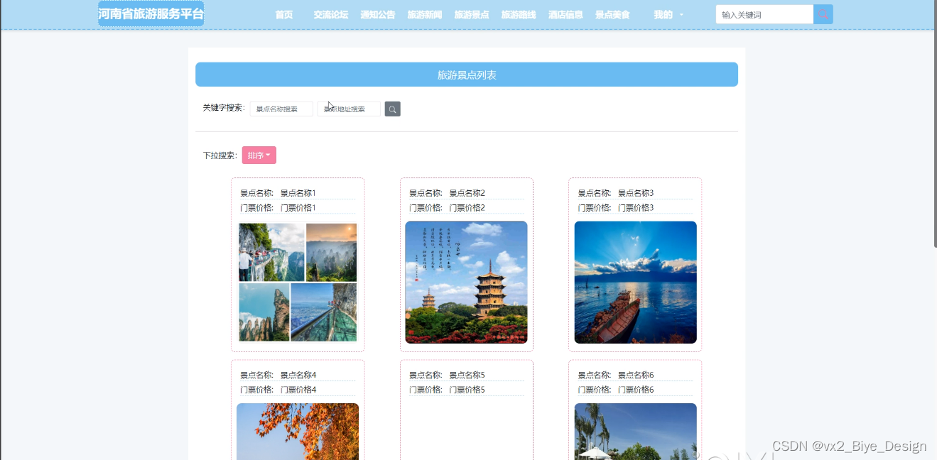 The main functional modules of the Henan Provincial Tourism Service Platform include homepage, personal information (personal information, password modification), public management (broadcast images, notification announcements), user management (administrators, ordinary users), information management (exchange forums, forum classification, tourism news, news classification), tourist attractions, tourist routes, hotel information, and scenic food, Adopting an object-oriented development model for software development and hardware installation can effectively meet practical usage needs, improve the corresponding software installation and program coding work, adopt MySQL as the main storage unit for backend data, use SSM framework and JAVA language for business system coding and development, and achieve all functions of this system. This report first analyzes the background, role, and significance of the research, laying the foundation for the rationality of the research work. Analyze the various requirements and technical issues of the Henan Provincial Tourism Service Platform, prove the necessity and technical feasibility of the system, and then provide a basic introduction to the technical software and design ideas required for designing the system. Finally, implement and deploy the Henan Provincial Tourism Service Platform for operation.