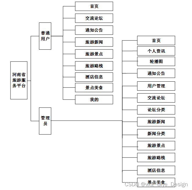 河南省旅游服务平台总体分为前台用户模块和后台管理员模块。