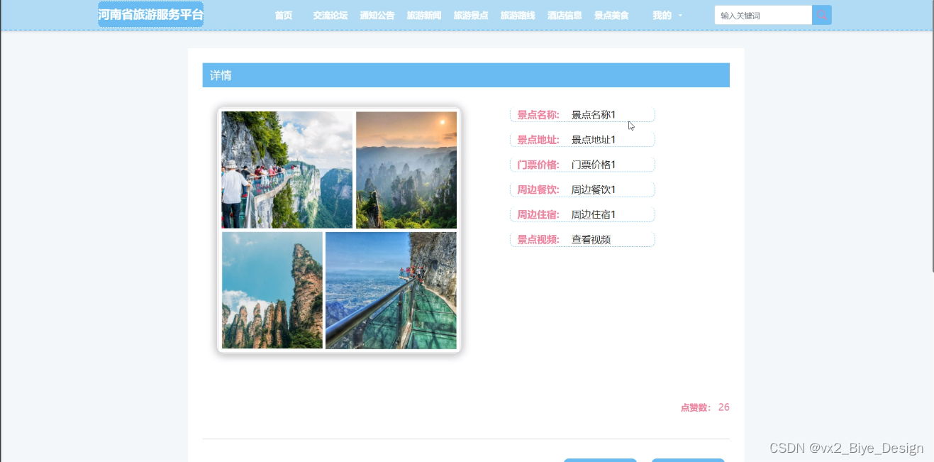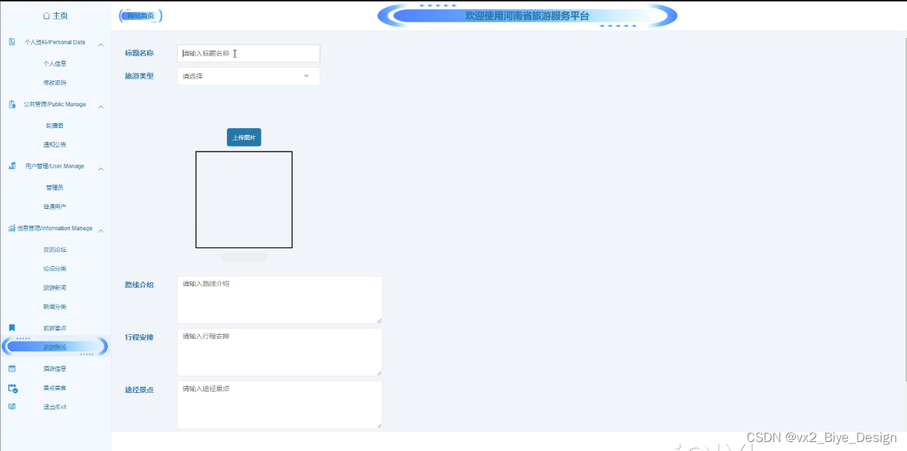 景点管理模块:景点管理分为景点添加、修改和旅游路线。景点信息由管理员进行修改、添加、删除操作;