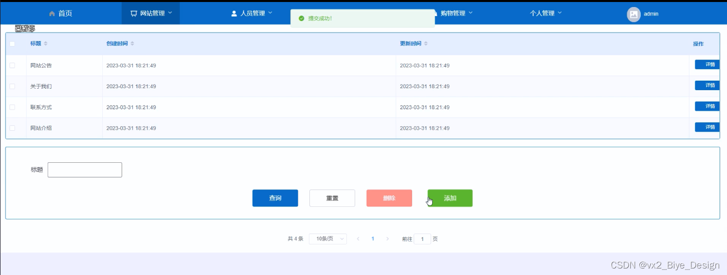 管理员执行二手商城管理,并可以操作相关内容,例如添加,查看,编辑和删除。通过单击“添加二手商城”,可以通过二手商城添加界面添加详细信息。单击查看字段级别链接以查看有关所选字段级别的信息。然后单击“提交”跳转重返到添加页面。添加成功后的信息会载入到二手商城查询列表中,管理员可进行编辑以及修改。