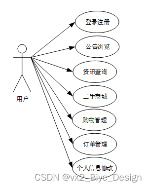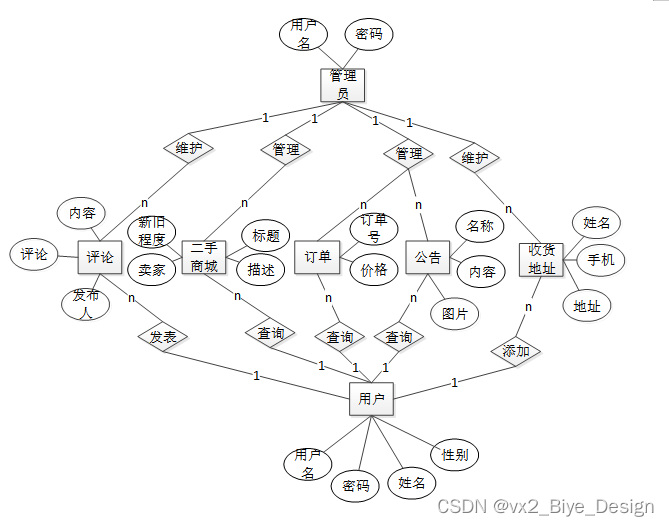 | 主事件流 | (1)管理员进入二手商城界面,查询二手商城商城信息 (2)管理员可以删除二手商城 |