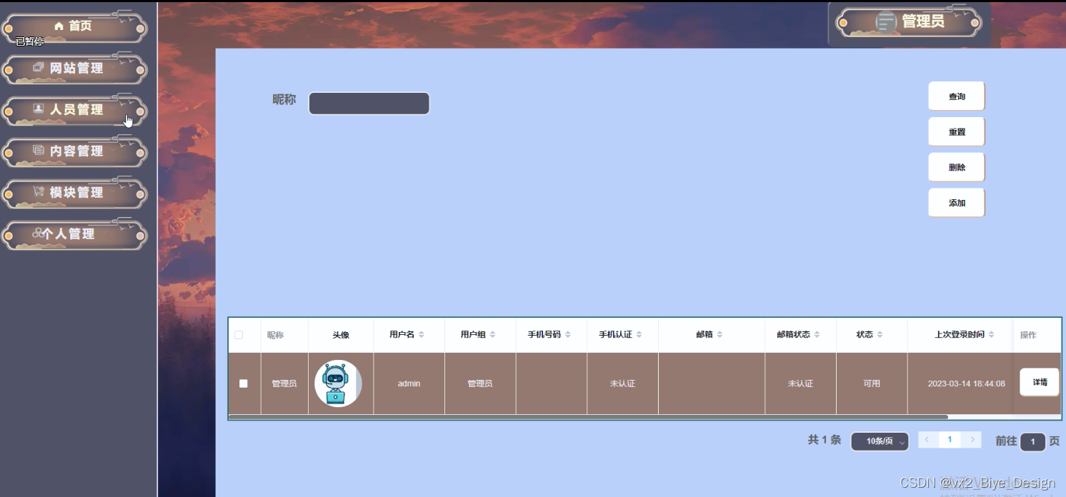(5)个人管理:管理员点击“个人管理”菜单可以对个人信息以及登录的密码进行设置。