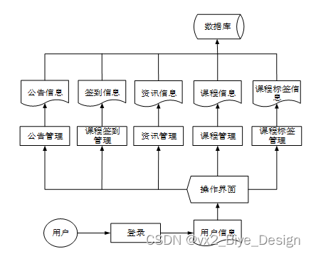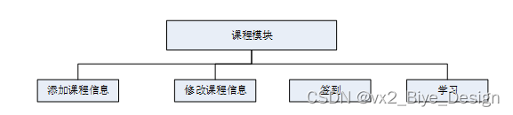 计算机课程教学辅助系统小程序是中需要存储不少课程信息,其模块功能结构,具体的结构图如下: